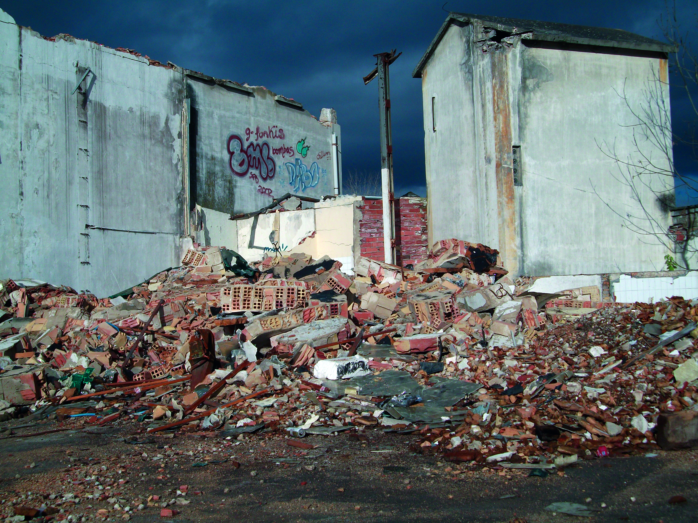 Arqueología del presente es una intervención urbana concebida a partir del derribo de la antigua fábrica de chorizos Pamplónica en el barrio de La Milagrosa, (Pamplona). Iosu Zapata, testigo directo de la transformación del entorno en el que vive y trabaja, convierte este proceso de demolición en un ejercicio de memoria material y simbólica: un intento de resignificar lo que el territorio desecha.