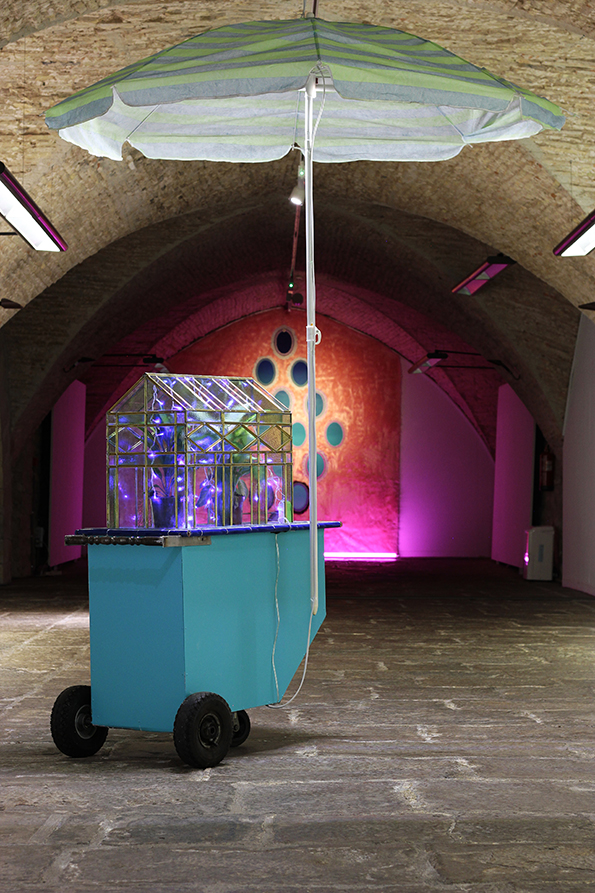 “Devociones de un paraíso ambulante” es una exposición de Iosu Zapata que entrelaza vida y práctica artística en un recorrido que explora las devociones, los jardines y lo ambulante. A partir de su proceso de investigación en relación a las arquitecturas populares e inspirado por sus experiencias en México, esta muestra presenta cerca de un centenar de obras —entre pintura, dibujo, grabado, instalación y video— que articulan un diálogo entre lo sagrado y lo profano, lo popular y lo íntimo, lo lúdico y lo crítico. En esta propuesta, Zapata convierte su viaje vital en una investigación poética sobre las creencias, los paisajes y las formas de habitar el mundo, transformando la exposición en un espacio de reflexión sobre las devociones contemporáneas.