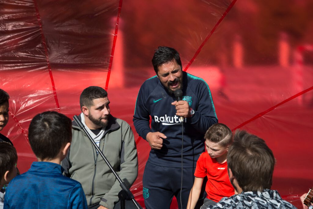 “Repensar la periferia” es un proyecto desarrollado por “Orekari” en el barrio de Etxabakoiz (Pamplona/Iruña) y construido a partir de un proceso de arquitectura colaborativa que propone reflexionar sobre el papel del arte en la construcción de nuevas miradas hacia los márgenes urbanos. En este marco, Iosu Zapata realiza una intervención artística en el espacio público que combina instalación y acción participativa, entendiendo la periferia como territorio simbólico de resistencia y creación colectiva. A través del diálogo con el vecindario y la activación del entorno, el proyecto busca redefinir la relación entre arte, comunidad y paisaje urbano, situando la práctica artística como herramienta de transformación social y pensamiento crítico.